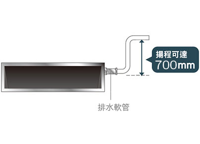 - 高揚程700mm的排水泵,排水距離可延長達10m。