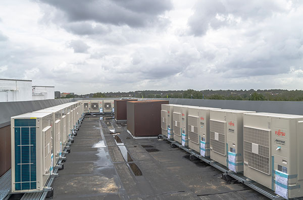 Planning restricted the height of the outdoor units so Fujitsu’s compact J-IIs system was specified. Each apartment has its own 2-pipe VRF system with high efficiency heating with SCOP in excess of 4.8. which is important as each apartment has its own electricity meters for individual apartment billing.