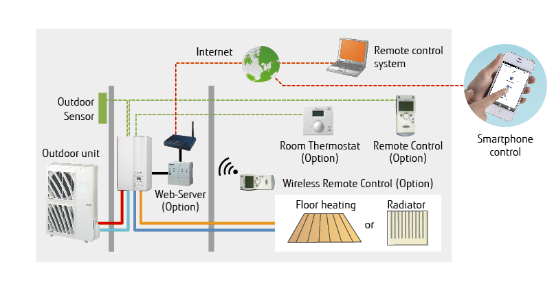 A variety of optional remote controllers are available. You can also remotely control the system via the Internet. These options meet your every lifestyle need.