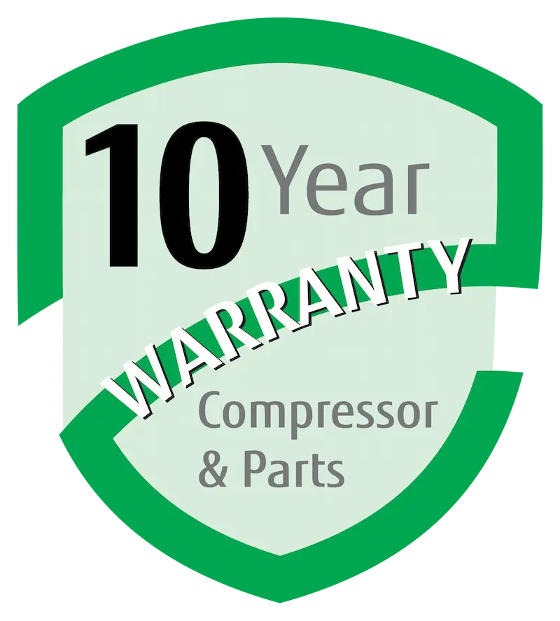 7 Year Compressor, 5 Year Parts out-of-the-box Warranty.