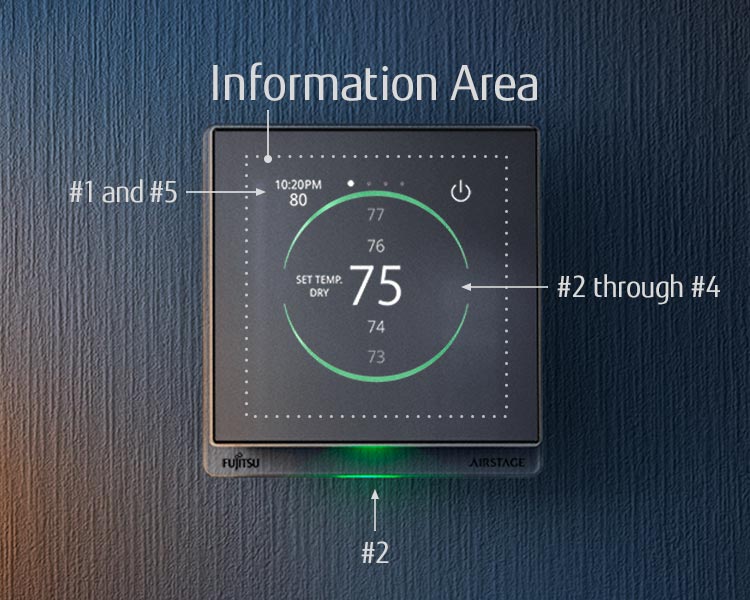 When not in use, the operation mode is indicated through LED lamp colors shown under the controller.
