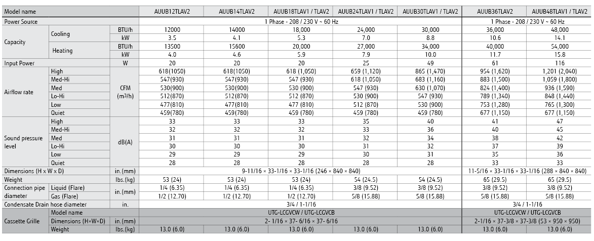 Models: AUUB12 / AUUB14 / AUUB18 / AUUB24 / AUUB30