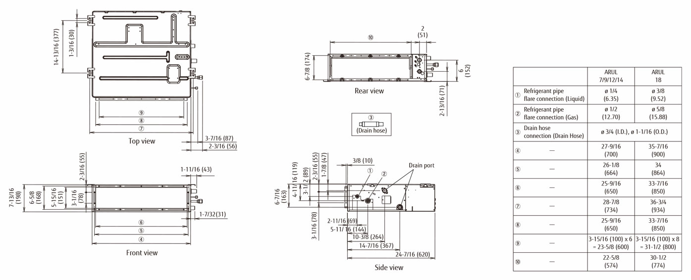 - 25ft.(7.5 m), Height difference : 0ft.(0 m) (Outdoor unit - Indoor unit).