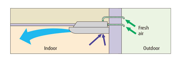 Installation pattern where part of the indoor unit is embedded into the ceiling.