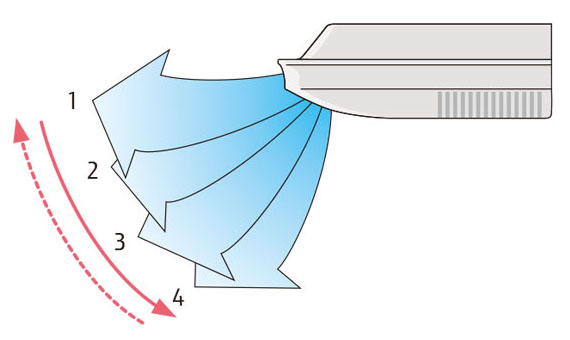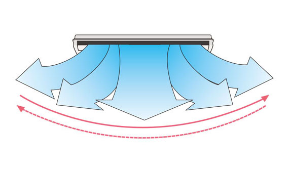 The louver design distributes air leaving a space between the chassis and the ceiling allowing far and wide air flow distribution.