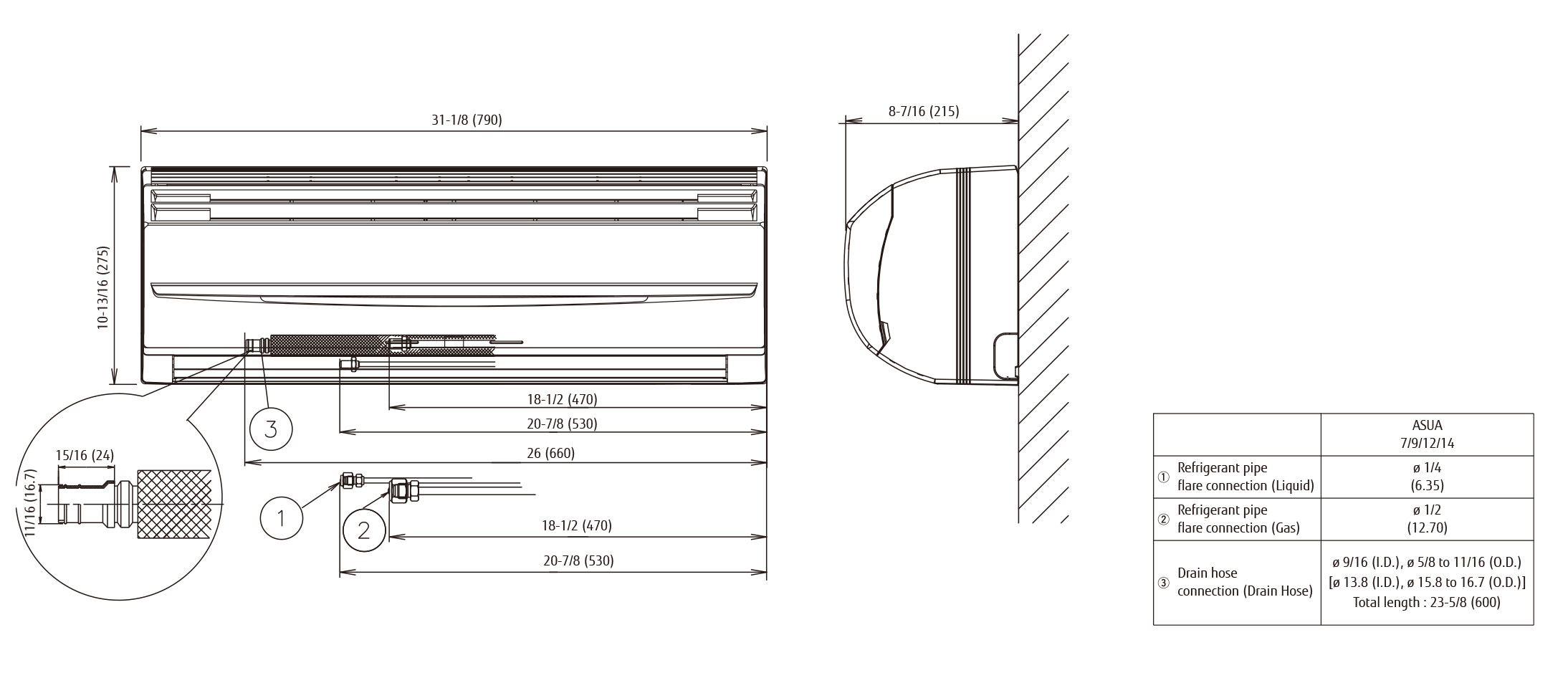 Though the indoor unit is compact, it features a large, high pressure cross fan (3-1/2in./90mm diameter) in a center mounted configuration and a Lambda type heat exchanger to provide plenty of power.