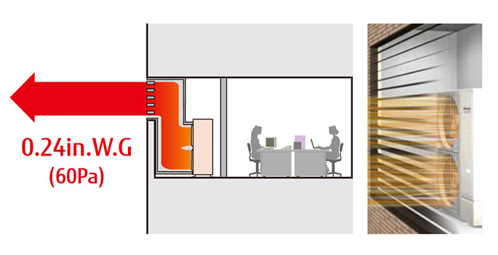 External static pressure is available up to 0.24in. W.G (60Pa).
