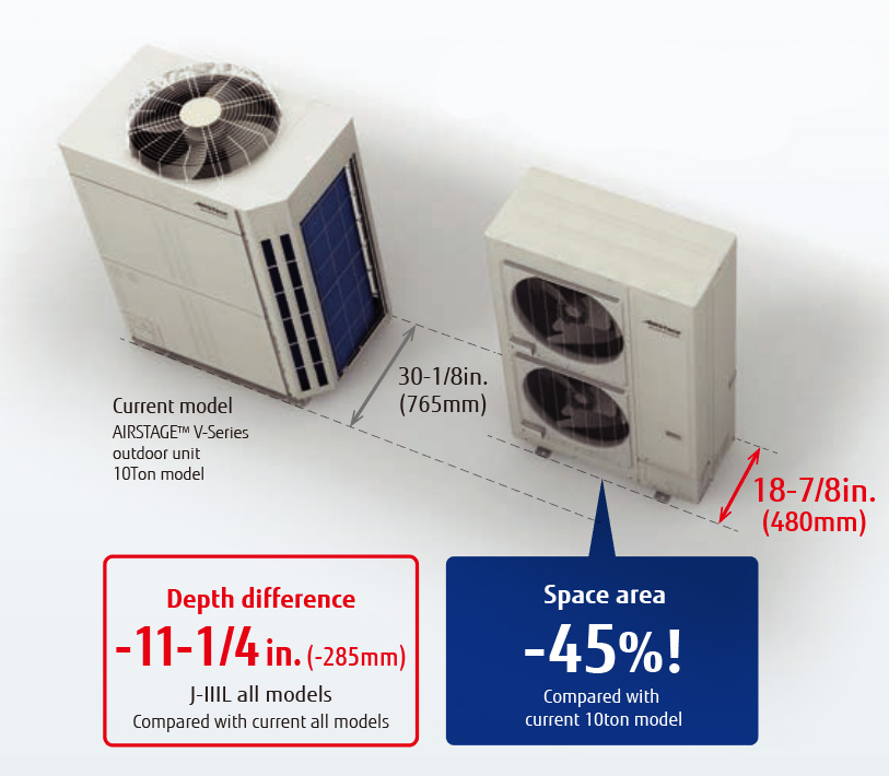 The compact and slim design of the J-lllL series makes them ideal for low rise / urban building designs with limited installation space.