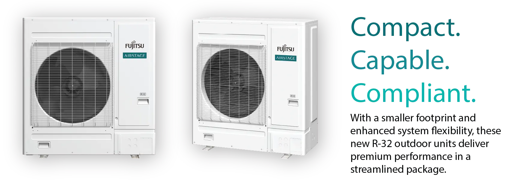 Fujitsu AIRSTAGE commercial outdoor units deliver scalable, high-performance climate control for a wide range of building types. Designed for flexibility and efficiency, each unit supports multiple indoor units while maintaining consistent operation and reduced energy usage.