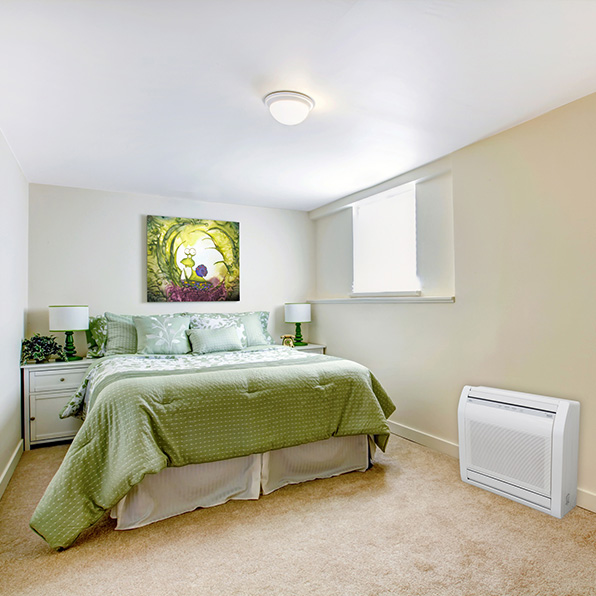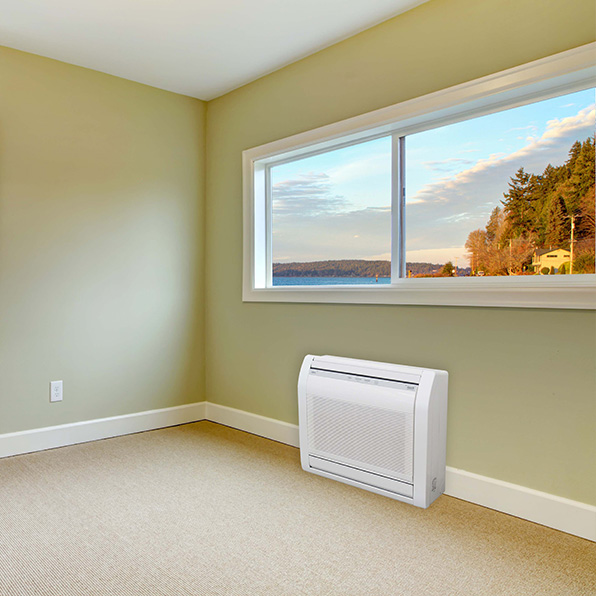 These models have a sleek modern look and are ideal for residential radiator replacements or any room with limited upper wall space. There are two different series of floor mount lines available – the RLFF line that provides heating down to -5F outdoor temperatures and the RLFFH line that provides heating down to -15F outdoor temperatures, for extremely cold climates.