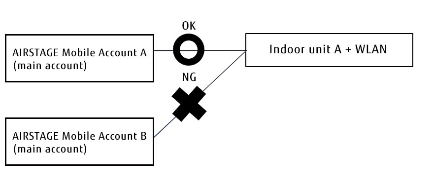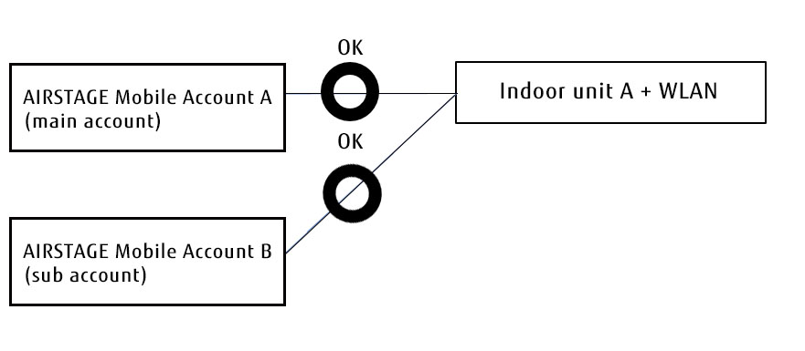 However, by creating a sub-account, a single indoor unit can be operated/monitored by multiple mobile devices.