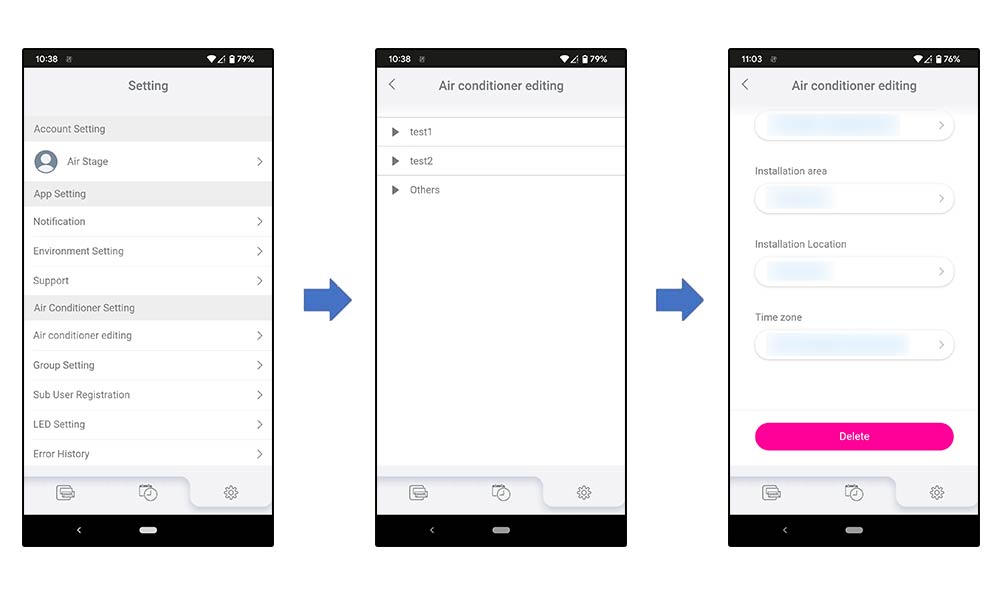 - Select Air conditioner editing of the Air conditioner Setting.
