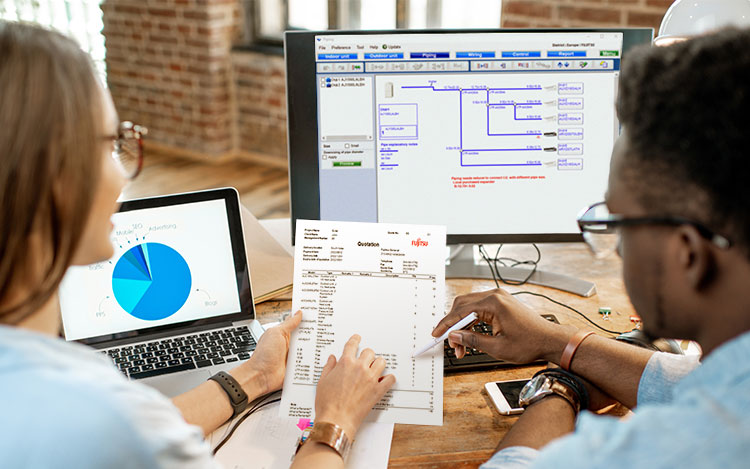 Once your project is designed, you can easily get the materials lists, product specifications, refrigerant calculations, and more using the output feature.